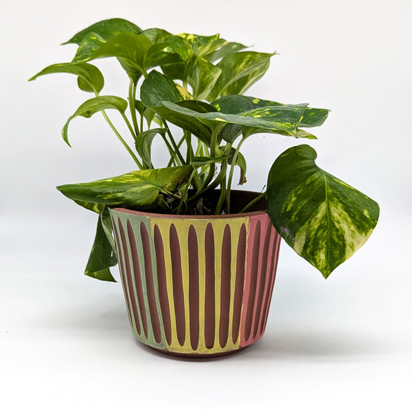 These planters are a unique combination of earthy and colourful, with the raw clay exterior sanded to be buttery smooth.